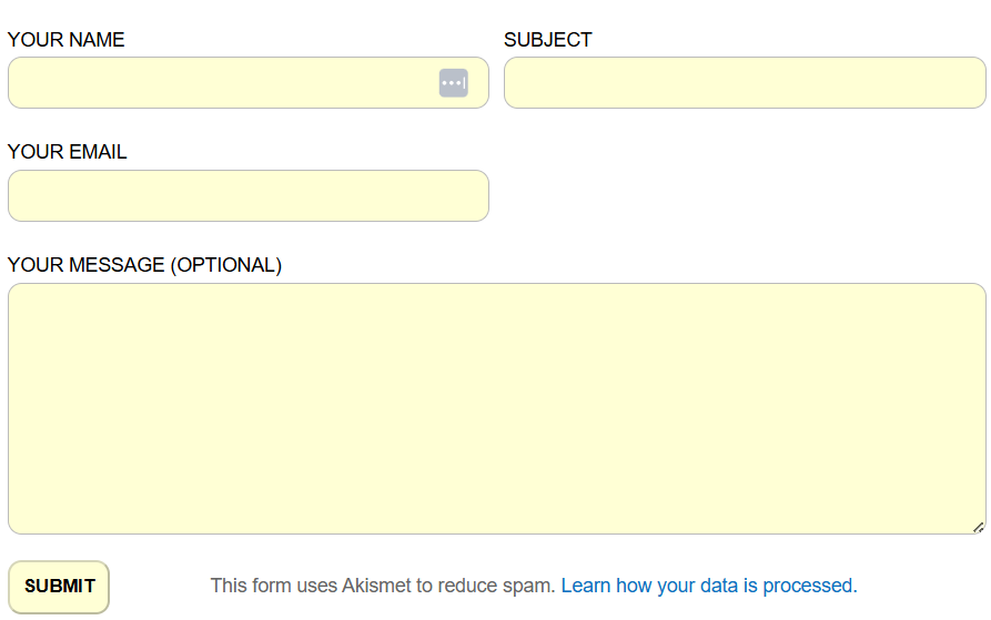 Po tych zmianach żółty szablon formularza Contact Form 7 będzie wyglądać następująco: