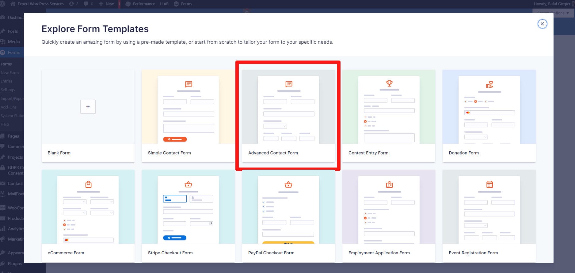 For this article, we’ll start with the Advanced Contact Form template. So,